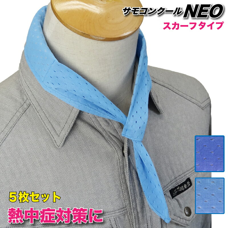 熱中症対策! サモコンクールNEOスカーフタイプ<ブルー/サックス>5枚セットひんやり 首すじ 涼感 暑さ対策 炎天下 屋内 作業 園芸 スポーツ ひんやりスカーフ 暑さ対策 グッズ 首 ひんやり スカーフ