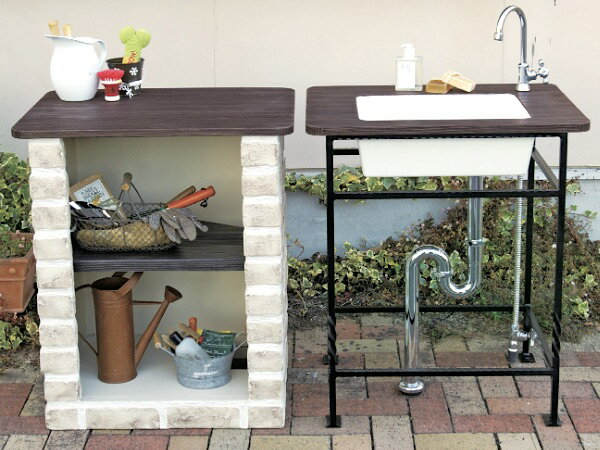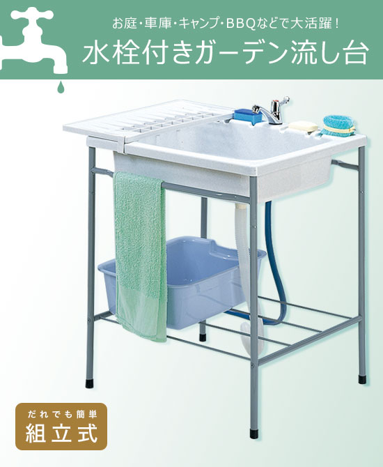 屋外用流し台 【送料無料】【水栓付きガーデン流し台 41097】 [庭先やベランダに便利なガーデン用流し台] 簡易流し台 庭用流し台 屋外用シンク 簡易シンク ガーデンシンク