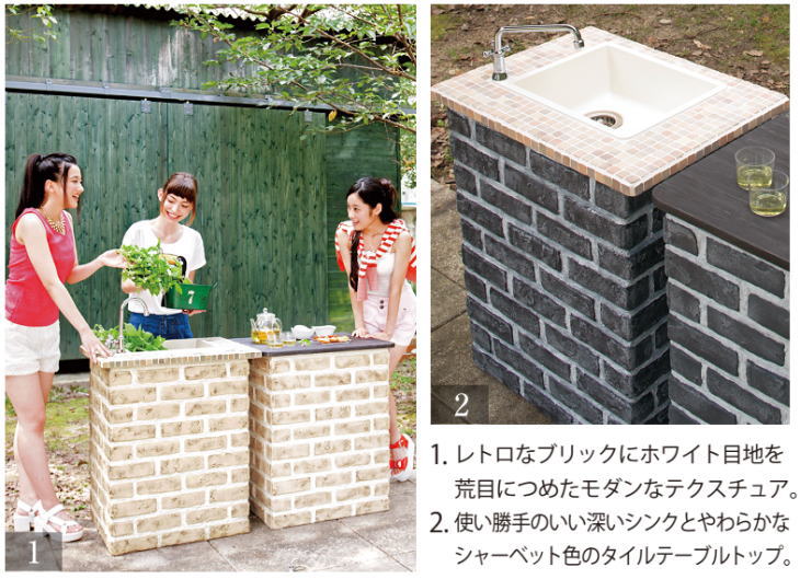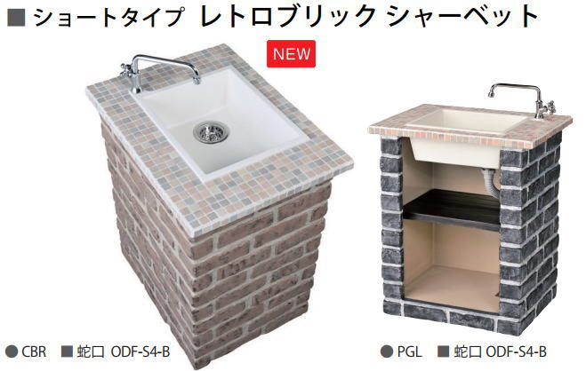 nikko ガーデンシンク ショートタイプ 【レトロブリック シャーベット】ODF-GS-HF3 レギュラー仕様 簡易 流し台 屋外 流し台 シンク ニッコーエクステリア